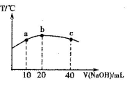 (6)元素T的含氧酸HTO具有漂白性。往20mL 0.0lmol·L-l的HTO溶液中逐滴加入一定浓度的烧碱溶液,测得混合溶液的温度变化如下图所示。据此判断:该烧碱溶液的浓度为______________mol·L-l;下列有关说法正确的是_______________。
