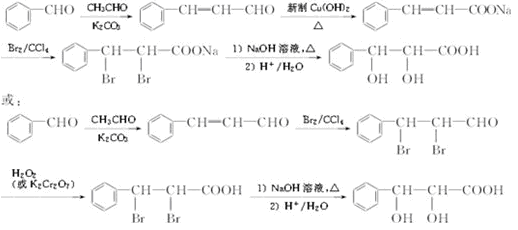 (5)醛与醛之间可以发生类似于B至C的反应,生成产物含有碳碳双键,再与溴单质加成,然后将醛基氧化为羧基,最后将溴原子水解即可得到两个羟基。