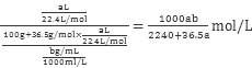 3、选择题 将标准状况下a L HCl(g)溶于100g水中,得到的盐酸的密度为b g·cm-3,则该盐酸的物质的量浓度是