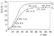 (4)其他条件不变,提高温度为T2,在答题卡框图中画出温度T2下甲酸甲酯转化率随反应时间变化的预期结果示意图。