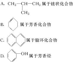 本题解析:B为环烯,C为芳香烃,D含有氧,不是烃。