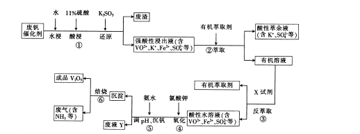 5、填空题 废钒催化剂的主要成分是V2O5、VOSO4、K2SO4、SiO2和Fe2O3等,现欲利用以下工艺流程回收V2O5。