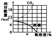 5、选择题  现有一瓶混有酵母菌和葡萄糖的培养液,通入不同浓度的氧气时,其产生的酒精和二氧化碳的量如下图所示(两种呼吸作用速率相等)。在氧浓度为a时