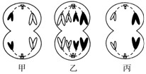 1、选择题 下面的甲、乙、丙图分别表示某高等动物三个正在进行分裂的细胞,以下说法正确的是