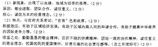 (1)材料一反映了明清时期我国商业发展有什么新现象?在激烈的竞争中,晋商能够纵横商海的原因有哪些?其成功经营的核心是什么?(6分)
