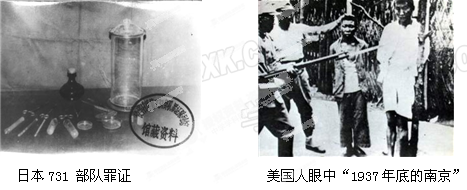 (1)暴行:研制化学武器,实施细菌战、毒气战;南京大屠杀。(2分)卢沟桥事变(2分)