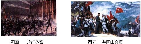 (3)依据材料三,指出中俄两国革命道路的差异,并谈谈你的认识。(6分)