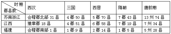 5、选择题 下为汉至唐前期东南地区行政区划设置分布简表