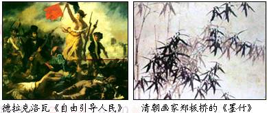 (3)如果你是解说员,请简介《墨竹》和《自由引导人民》的艺术风格特征。