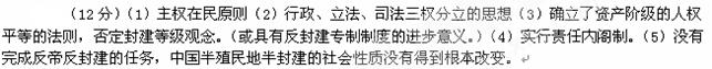 (5)辛亥革命是中国民主政治的里程碑,它最大的局限是什么?(3分)