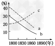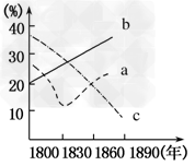 1、判断题 史学家统计英国19世纪人口结构:a农民,b工人,c中产阶级。下图合乎英国发展史实的是