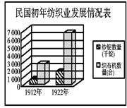 4、判断题 分析1912~1922年《民国初年纺织业发展情况表》,从中能够得出的正确结论是