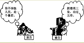 秦朝人民的诉状:你修长城,建阿房宫、骊山陵墓,徭役繁重;一人犯法,株连家族和邻里,刑法残酷;你要我们将收获的物产的绝大部分交给你,赋税沉重;你焚书坑儒,钳制了思想,摧残了文化。你是一个暴君。
