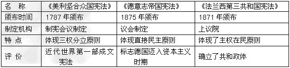 1、判断题 宪政是现代政治文明的重要特征。下表中关于三部宪法的表述,完全正确的是