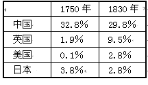 3、判断题 阅读1750年至l830年世界制造业产量的相对份额表(依据美国学者保罗·肯尼迪《大国的兴衰》),指出对该表解释正确的是
