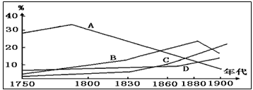 5、判断题 下面是英、美、德、中四个国家的制造业在世界制造业产值中所占比重的曲线示意图。图中的“B”曲线代表的国家是?