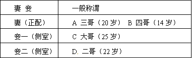 参考答案:B 本题解析:本题主要考查中国古代的政治制度。西周的时候,为了加强分封制形成的统治秩序,解决贵族之间在权力、财产和土地继承上的矛盾,实行了与分封制互为表里的具有政治性质的宗法制。宗法制是用父系血缘关系的亲疏来维系政治等级、巩固统治的制度。所以应选B。 本题难度:一般 3、判断题 观察下表,在西周时期,有资格继承王位的是 参考答案:A 本题解析: 本题难度:一般 4、综合题 阅读材料回答问题(12) 参考答案: 本题解析: 本题难度:一般 5、判断题 《全球通史》中有这样一段描述:“新皇帝……废除了所有的封建国家和王国,将广阔的国土划分为若干行政区,每一行政区都配备一批由中央政府任命,并向中央政府负责的官员”,这是指 参考答案:B 本题解析: 本题难度:简单 |