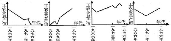 1、判断题 下图中,最能正确显示“文革”期间工农业总产值变化趋势的一幅是