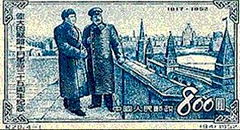 1、判断题 下图是1953年2月14日我国发行的一套标题为《伟大的苏联十月革命35周年纪念》邮票,但很快就收回,你认为主要原因可能是