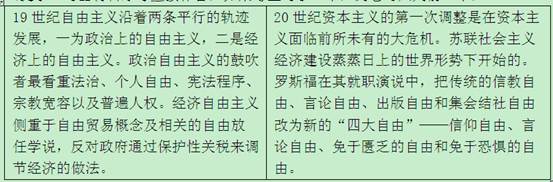 (3)历史背景:资本主义制度普遍建立,工业革命的扩展与世界市场逐渐形成。挑战:苏联社会主义国家的强大对资本主义的政治自由构成挑战;经济危机的爆发表明自由放任的经济政策不适应资本主义发展的新形势。
