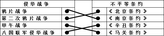 ⑴.用连线方式把下列侵华战争和相应的不平等条约联系起来,并概述其对中国近代社会性质的影响。(6分)