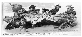 2、判断题 自习观察该图,图中被撕扯的布上的英文字母为“CHINA”,判断这一历史现象发生在那一次战争之后(?)