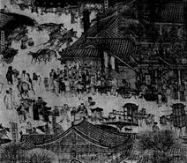 图二:唐代长安城(西北角)?图三:《清明上河图》