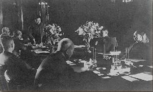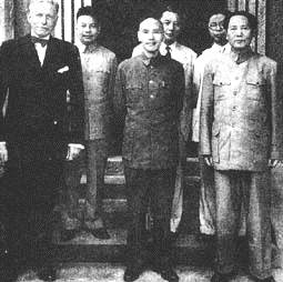 (图二:1945年毛泽东、蒋介石、美国特使赫尔利在重庆合影)