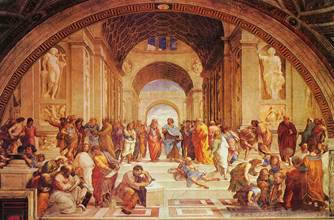 (1)、这幅画中几乎囊括了古希腊不同时代的所有著名的思想家和艺术家,除了柏拉图,请你写出另外两名古希腊伟大的哲学家的名字。