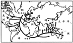 5、判断题 一位学者曾记载:“达·伽马和麦哲伦的航行证实了一条通往东印度的向东海上航线的切实可行性,意大利与东印度和中国的陆路贸易减到微不足道的比率。意大利荣耀的过去时代已经消失。”在这段话所表述的历史时期,对世界发展影响最大的地区是图中的