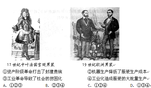 1、判断题 如图,19世纪欧洲男子着装发生了很大变化,宫廷贵族那种装饰过于奢靡繁琐的服装被舍弃,便于工作和运动的舒适、简便的男装流行起来;出现以大众为销售对象的成衣,时装不再是上流社会的专利。出现这些现象的原因包括