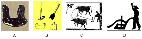 试题分析:本题主要考查学生准确解读材料信息的能力。从材料“两千多年”“农民”“唐代”等关键信息可知,唐代出现了结构更为完备的曲辕犁,奠定了中国传统步犁的基础。所以答案选D。C图是出现在东汉的耦犁。