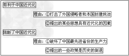 5、判断题 下图为一位同学的课堂笔记,记录了对某一历史事件的不同评价。据此她学习的内容是:有利于中国近代化理由