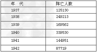 5、判断题 观察分析《抗日战争部分时期国民党军队阵亡人数统计表》,从中能够得出哪一历史结论
