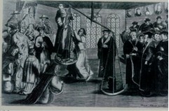 2、判断题 下图是欧洲宗教改革时期的一幅图片,图右边是新教,左边是天主教,中间是天平,天平的右端向下倾斜,里面装着《圣经》,旁边站着信士,而天平的左端站着的是教皇、红衣主教等,他们被翘起。它反映的最主要信息是