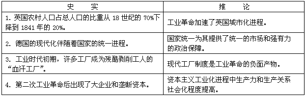1、判断题 下列图表内容与人类工业化进程有关,左侧是史实陈述,右侧是对陈述的推论。其中这些推论,正确的有