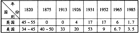1820——1985年英美进口关税率(%)