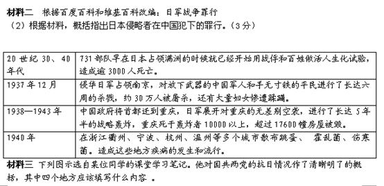 (4)根据材料结合所学知识,分析抗日战争胜利的意义。(6分)