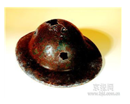 材料一?位于宛平城内的中国人民抗日战争纪念馆,珍藏着一顶铁盔(右图)。铁盔是在1987年重修宛平城墙时出土的,盔身斑斑锈迹。盔顶正中有一直径约6厘米的不规则小孔,从孔形来看,极像是被子弹击穿的。我们虽然一直无法知道铁盔的主人是谁,但就其出土时间与地理位置来看,它无疑是曾经坚守宛平城的英勇的29军士兵的,它一定见证过当年那场你死我活的、无比惨烈的战斗。?——摘自《北京日报》