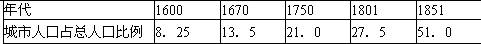 材料四:16一19世纪英国城市人口占总人口比例(%)
