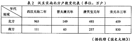 4、判断题 影响表2汉代至宋代南北方户数变化的主要因素是。