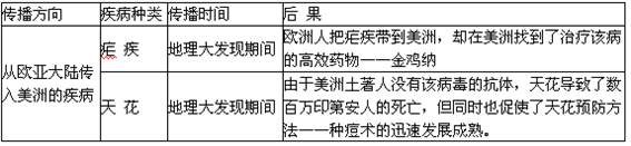 材料一?欧洲人的发现不仅导致新的全球性视野,也导致了美洲——欧亚大陆之间疾病传播,阅读下列表格