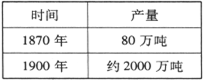 本题解析:石油产量变化由1870年的80万吨到1900年的2000万吨,说明产量大幅度提高。蒸汽机通过锅炉产生蒸汽,进入汽缸,采用的是外燃的燃烧方式,热效率较低。在蒸汽机发展的同时,有人开始研究把锅炉和汽缸合并在一起的内燃机。但是,煤很难在短时间内迅速燃烧,直到石油工业发展起来后,才为内燃机的创制提供了适用的燃料。说明新的内燃机的发明和应用带动了石油的生产。AD不是这一时期的特征,电力的广泛应用与此无必然的关系。