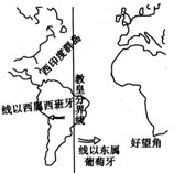 1、判断题 1494年,西班牙和葡萄牙在教皇仲裁下,划定了一条如图所示的分界线。这意味着