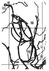 本题解析:本题主要考查学生准确解读图片信息的能力,从地图信息中能够看出有“云南、缅甸”字样,联想抗战史实不难得出此战役应是中国远征军赴缅甸作战,其作战目的在于保护滇缅公路的畅通,保障国际援华战略物资的供应,所以答案选B,A C D三项与上述史实特征不符。