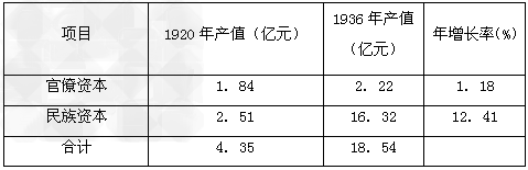 (2)根据材料二,指出一战结束后的1920—1936年,中国民族资本的发展状况。