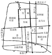 5、判断题 下图为北宋东京(今开封)示意图,其中有两处错误,它们是