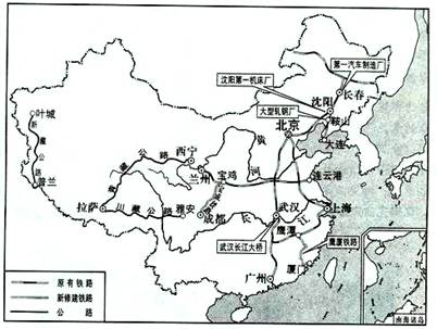 第一个五年计划工业交通建设主要成就分布示意图
