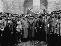 5、判断题  下图为1912年2月15日孙中山率南京临时政府官员拜谒明孝陵(朱元璋陵寝)。在祭文中,孙中山向“我高皇帝在天之灵”报告“光复汉室”的喜讯,并且说,能够取得这一胜利,正是靠“我高皇帝在天之灵”的启迪所赐。这说明
