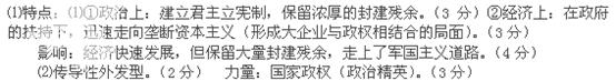 (2)主要表现:政治:宪法赋予天皇拥有绝对权力,形成近代天皇制(1分)